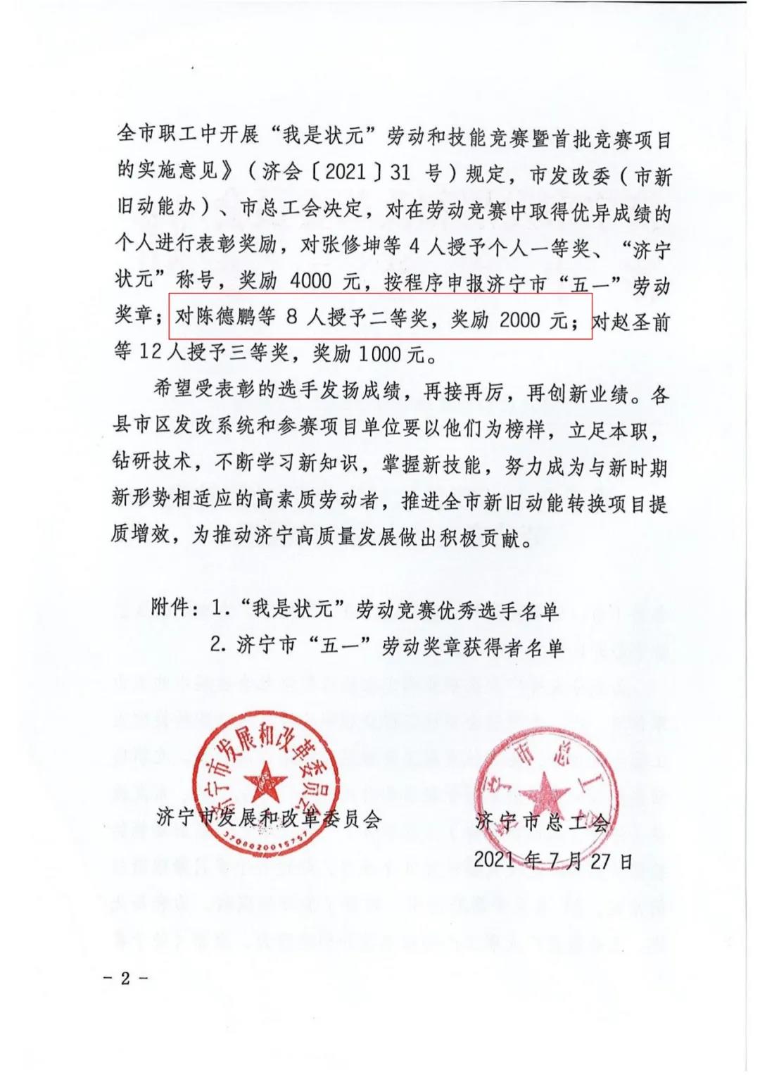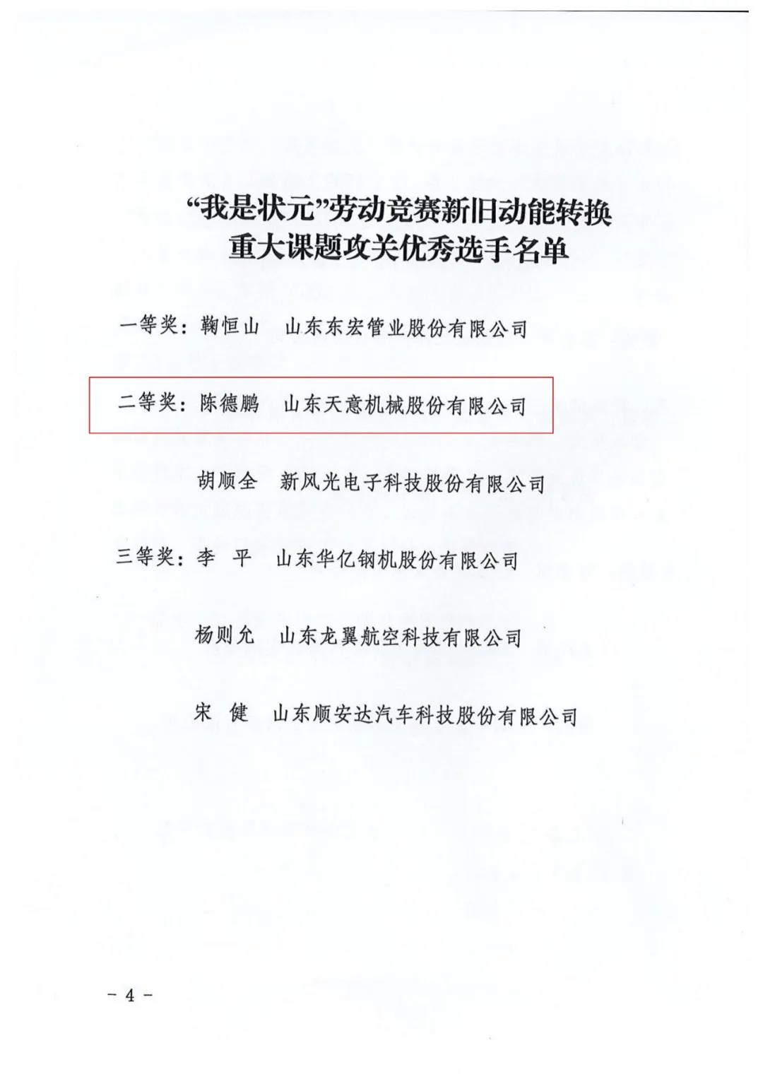 我司陳德鵬獲得濟寧市“我是狀元”勞動競賽新舊動能轉(zhuǎn)換重大課題攻關(guān)競賽單元二等獎