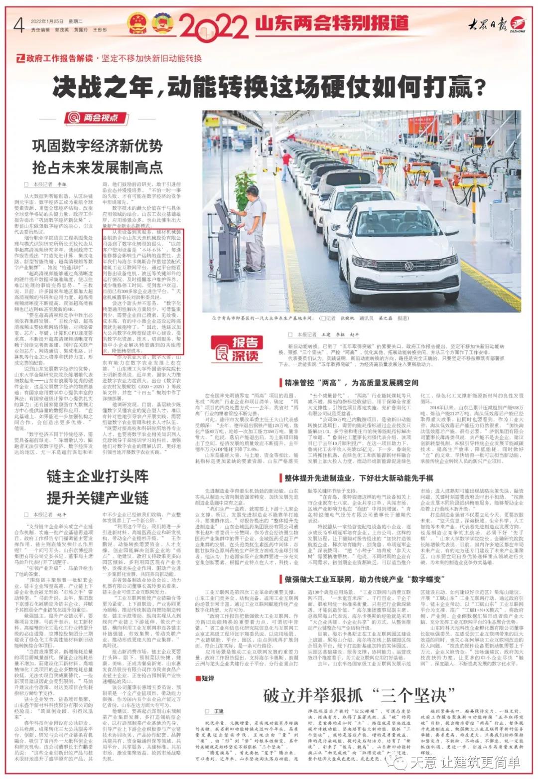 會議期間,劉洪彬提交了《關(guān)于加快山東省中小企業(yè)數(shù)字化轉(zhuǎn)型的建議》的提案,并就數(shù)字化轉(zhuǎn)型的相關(guān)內(nèi)容接受了大眾日報記者的采訪。劉洪彬告訴記者,“以前客戶使用設(shè)備是‘不壞不休’,每逢維修都會影響生產(chǎn)運(yùn)轉(zhuǎn)的連貫性。去年我們搭建了裝配式建筑工業(yè)互聯(lián)網(wǎng)平臺,通過平臺能看到售出設(shè)備電機(jī)、液壓等關(guān)鍵部件的運(yùn)行情況,及時提醒客戶維護(hù)保養(yǎng),減少維修停工時間,受到客戶歡迎,目前已有300多家企業(yè)進(jìn)駐平臺。“數(shù)字化轉(zhuǎn)型通用性解決方案較少,可借鑒案例少,需要企業(yè)自己摸索,見效慢、成本高,有的中小微企業(yè)還沒過陣痛期就先被拖垮了。”因此,他建議“加大公共數(shù)字化轉(zhuǎn)型促進(jìn)中心建設(shè),提供數(shù)字化資源、技術(shù)、培訓(xùn)服務(wù),幫助中小企業(yè)解決轉(zhuǎn)型遇到的共性需求,降低轉(zhuǎn)型成本。”