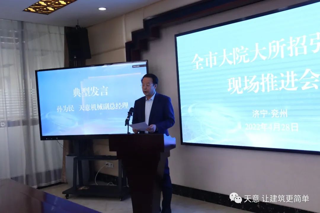 為落實(shí)《市政府工作報告》有關(guān)大院大所招引工作要求,推動大院大所招引工作快速開展,4月28日在兗州區(qū)召開大院大所招引工作現(xiàn)場會。市科技局黨組副書記、三級調(diào)研員徐西勝,市科技局副局長侯佳佳及十二縣市區(qū)科技分管領(lǐng)導(dǎo)一行蒞臨天意機(jī)械觀摩指導(dǎo),深入了解天意機(jī)械發(fā)展建設(shè)情況,進(jìn)一步強(qiáng)化服務(wù)保障,加快落地見效,以更大力度統(tǒng)籌推進(jìn)經(jīng)濟(jì)社會發(fā)展。兗州區(qū)副區(qū)長崔增力、天意機(jī)械副總經(jīng)理孫為民陪同觀摩。