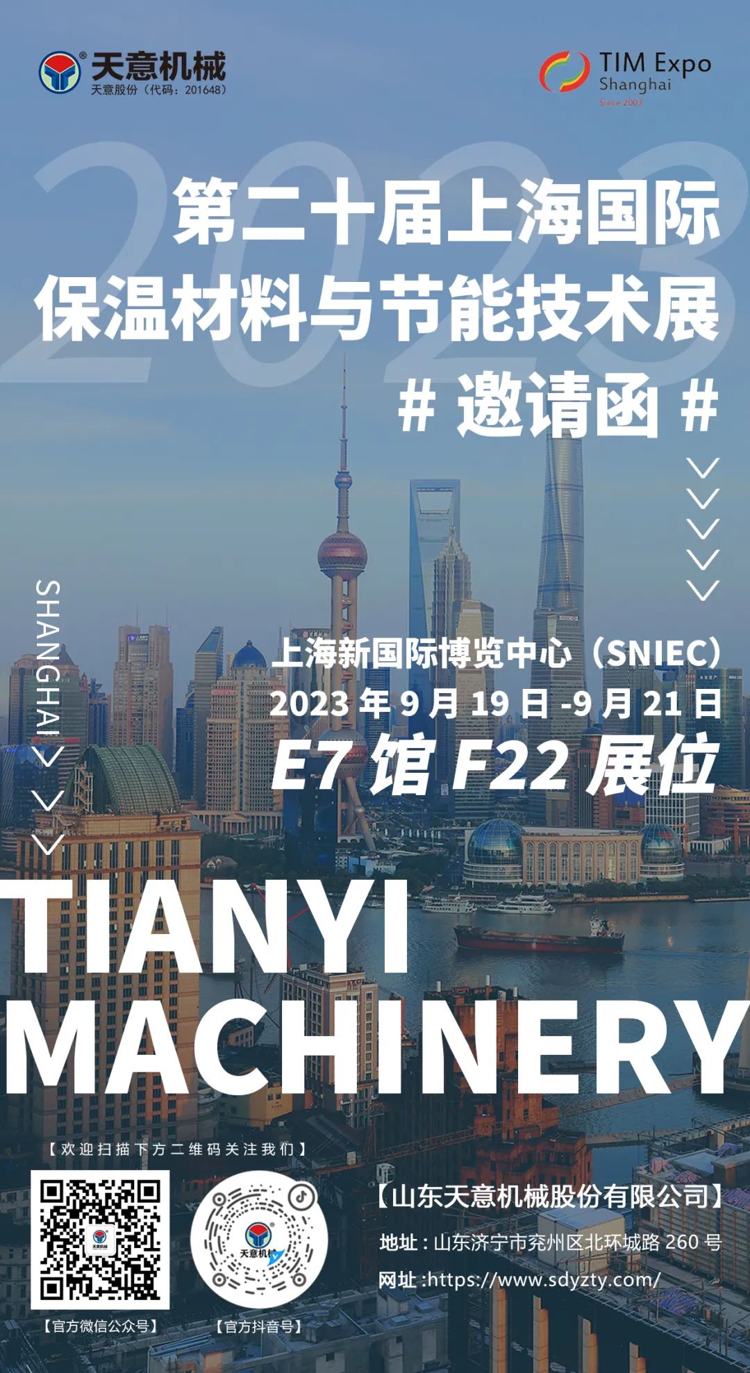 展會預(yù)告丨天意機械即將亮相第二十屆上海國際保溫材料與節(jié)能技術(shù)展