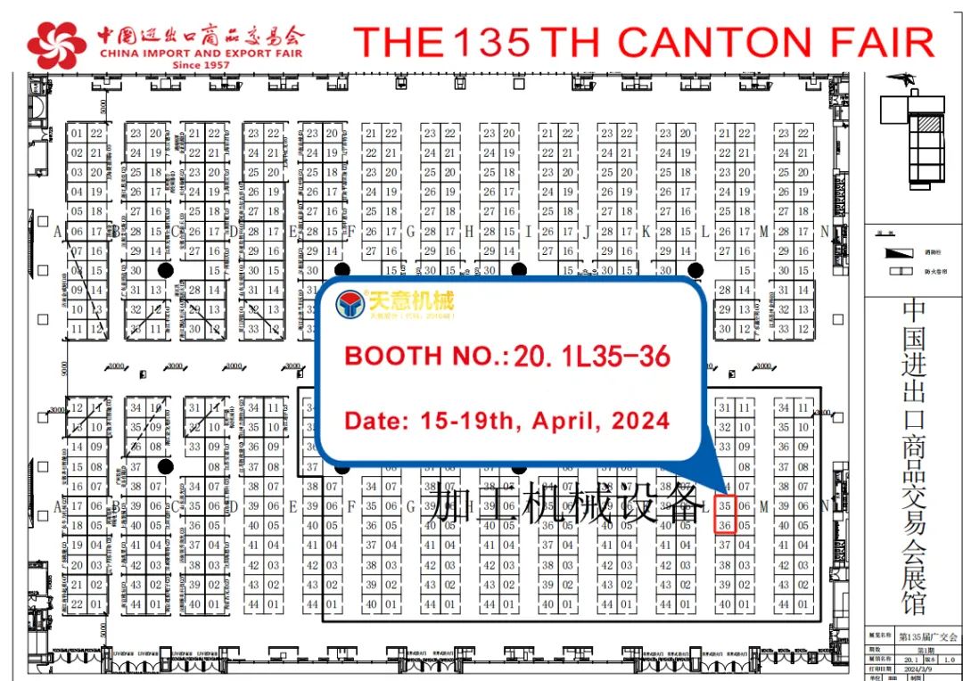 誠邀您參與第135屆廣交會!天意機械與您相約20.1L35-36展位