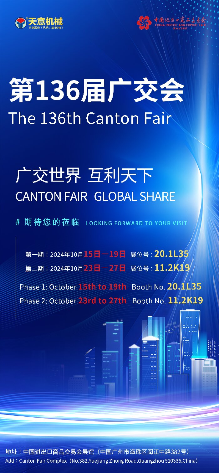 第136屆廣交會(huì)的日益臨近,天意機(jī)械已經(jīng)整裝待發(fā),期待在展會(huì)期間與全球客戶探討合作機(jī)會(huì),推動(dòng)雙方共同發(fā)展。未來(lái),天意機(jī)械將繼續(xù)秉承“質(zhì)量第一、客戶至上”的理念,不斷提升自身的技術(shù)實(shí)力和市場(chǎng)競(jìng)爭(zhēng)力,為全球客戶提供更加優(yōu)質(zhì)的產(chǎn)品和服務(wù)。