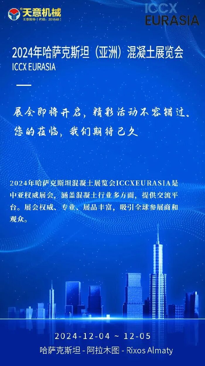 此次參加哈薩克斯坦混凝土展覽會(huì),不僅是展示公司實(shí)力和技術(shù)的重要機(jī)會(huì),更是開(kāi)拓中亞市場(chǎng)、尋找合作伙伴的有效途徑。哈薩克斯坦作為中亞地區(qū)的重要國(guó)家,其建筑和基礎(chǔ)設(shè)施建設(shè)項(xiàng)目眾多,對(duì)混凝土產(chǎn)品的需求量大。天意機(jī)械將借此機(jī)會(huì),深入了解中亞市場(chǎng)需求,積極尋求與當(dāng)?shù)仄髽I(yè)和專(zhuān)業(yè)人士的合作機(jī)會(huì),共同推動(dòng)混凝土行業(yè)的發(fā)展。