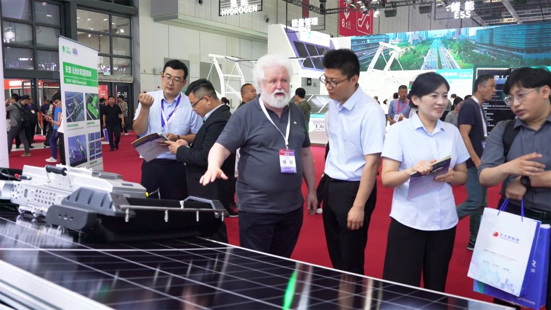 在SNEC PV+ 2025這一光伏行業(yè)的盛會上,天意科技全方位展示了其針對大型地面電站、分布式廠房屋頂、農(nóng)光互補(bǔ)等多種應(yīng)用場景精心研發(fā)的智能光伏清潔機(jī)器人系列。這些機(jī)器人憑借其卓越的性能,成為了高效解決光伏電站清潔難題的優(yōu)選方案。