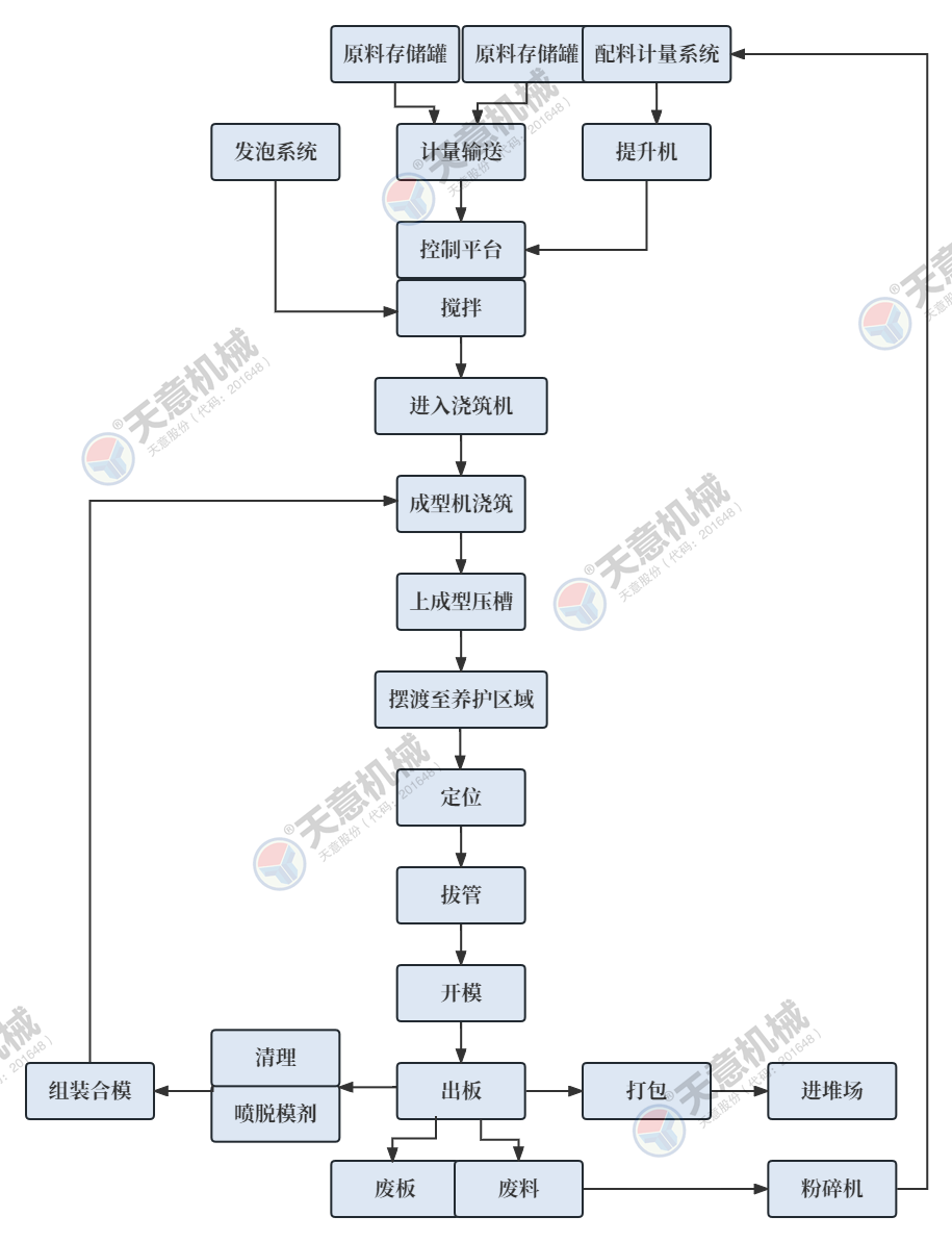 1.采用水泥發(fā)泡墻板專用5立方雙螺帶式高速攪拌機(jī),有效容積為3.5立方,攪拌均勻,攪拌速度快(發(fā)泡完成后60秒內(nèi)可將泡沫和料漿攪拌均勻),整體攪拌周期6-8分鐘/次,單次攪拌可澆筑一臺(tái)20塊墻板機(jī),雙寬螺帶式設(shè)計(jì),可有效的降低泡沫破損率.